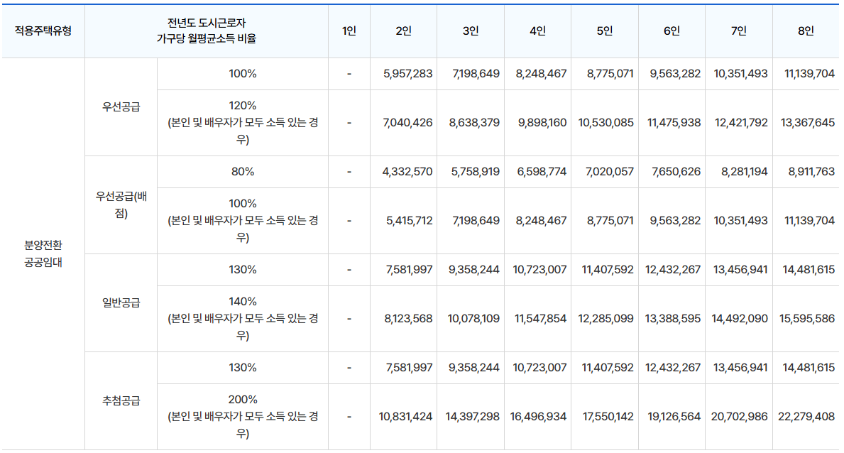 - 소득기준 : 전용면적 60㎡ 이하 일반공급에 적용