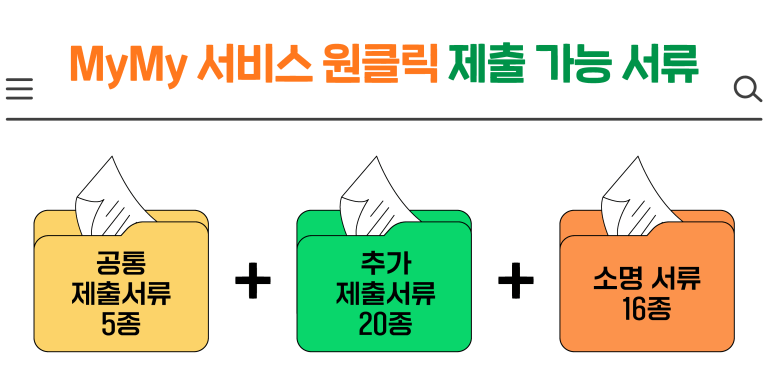 마이마이 서비스 이용 시 공통 제출서류 5종, 추가 제출서류 20종, 소명서류 16종 등 총 41종의 서류를 임대주택 유형별, 자격별로 한번에 제출 가능합니다.