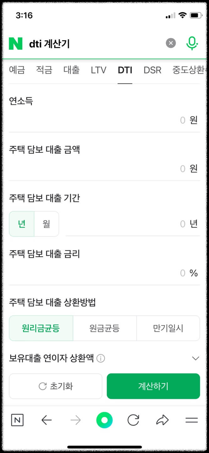 네이버 DTI 계산기